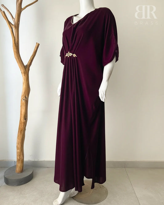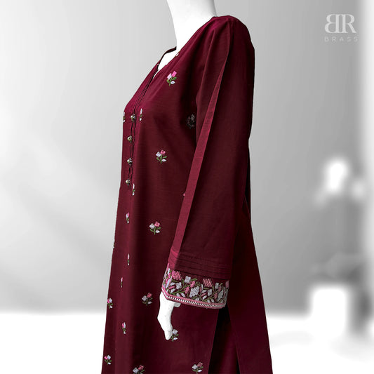 2 Piece - Embroidered Pure Slub Khaddar Stitched Suit (Maroon)