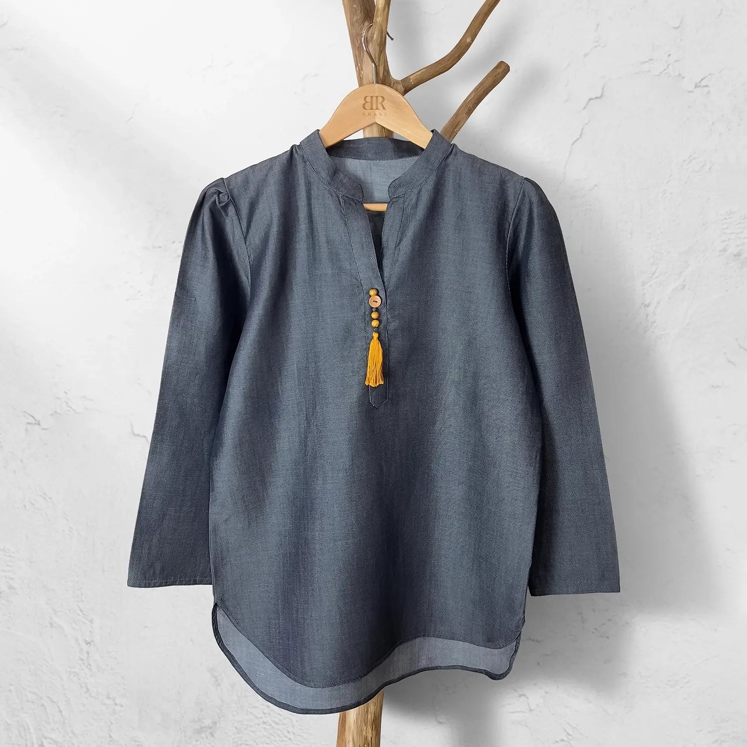 - Tassel on Front made with wooden button and beads